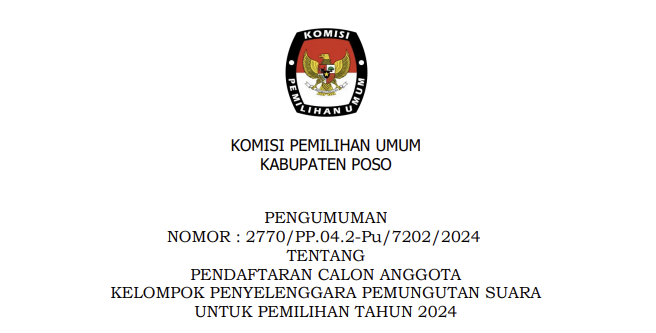 PENDAFTARAN CALON ANGGOTA KELOMPOK PENYELENGGARA PEMUNGUTAN SUARA UNTUK PEMILIHAN TAHUN 2024