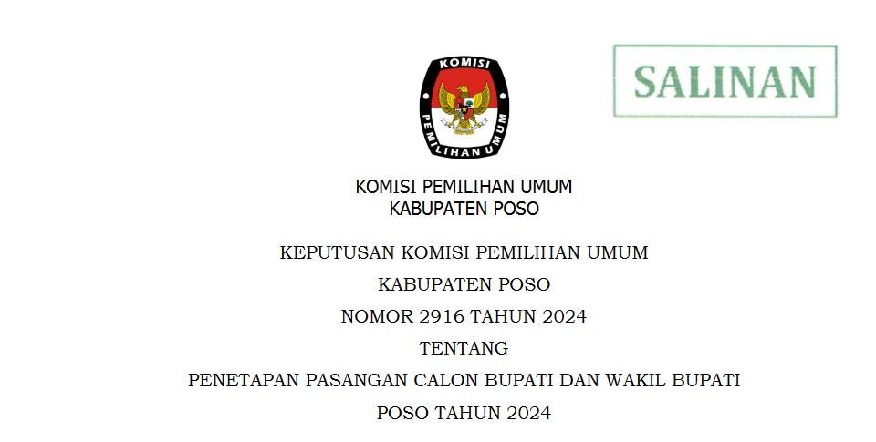 PENETAPAN PASANGAN CALON BUPATI DAN WAKIL BUPATI POSO TAHUN 2024