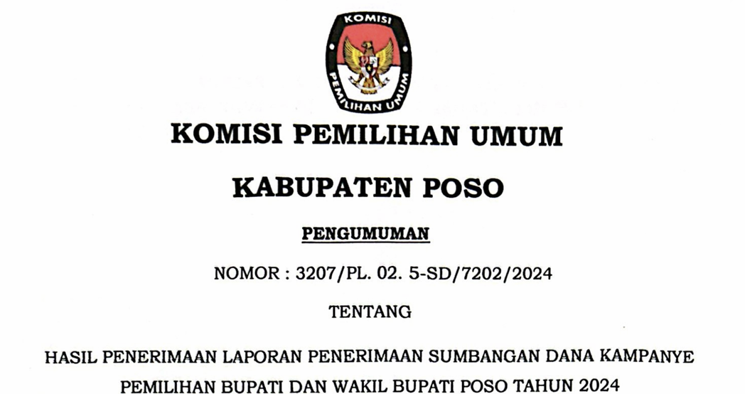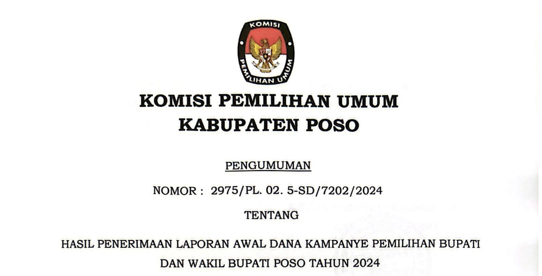 HASIL PENERIMAAN LAPORAN AWAL DANA KAMPANYE PEMILIHAN BUPATI DAN WAKIL BUPATI POSO TAHUN 2024