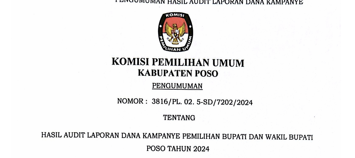 HASIL AUDIT LAPORAN DANA KAMPANYE PEMILIHAN BUPATI DAN WAKIL BUPATI POSO TAHUN 2024