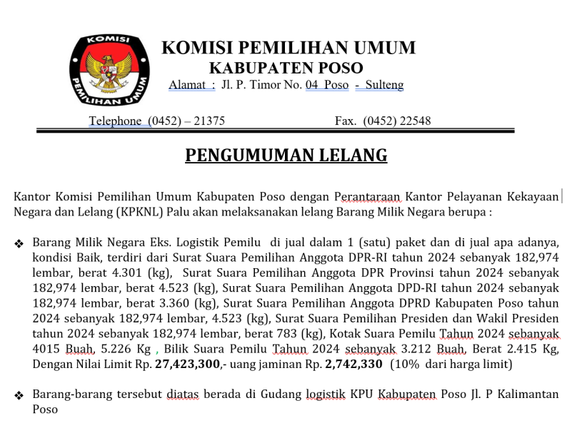 PEMILIHAN BUPATI DAN WAKIL BUPATI POSO TAHUN 2024