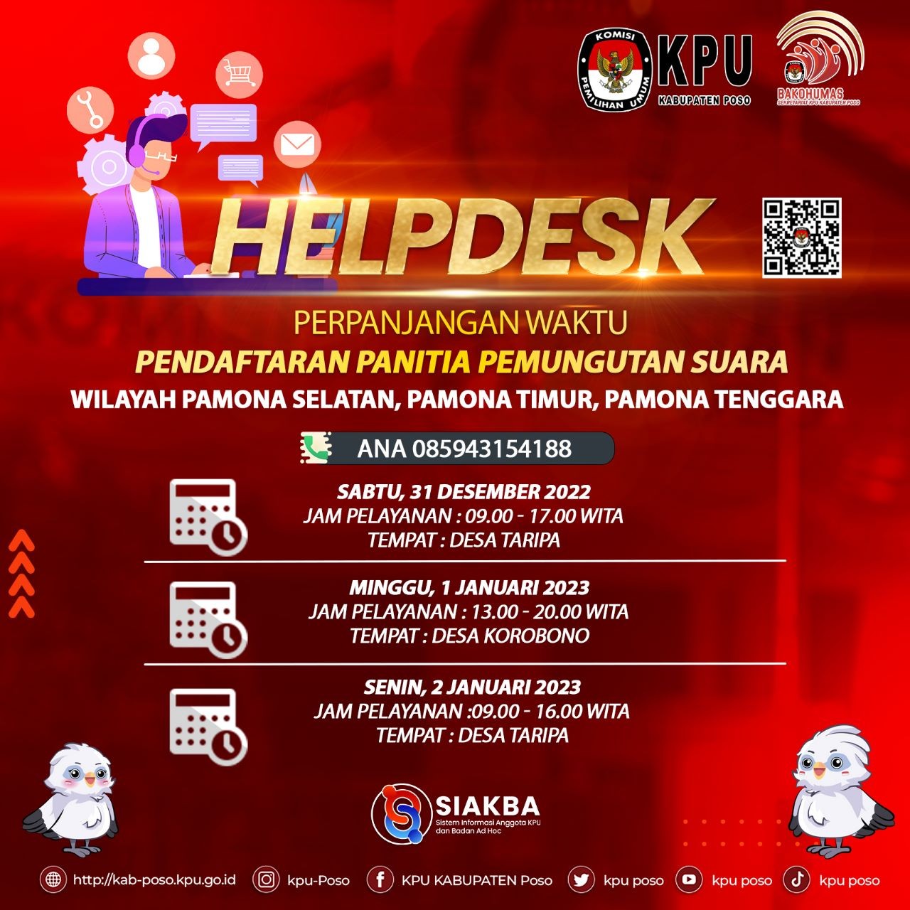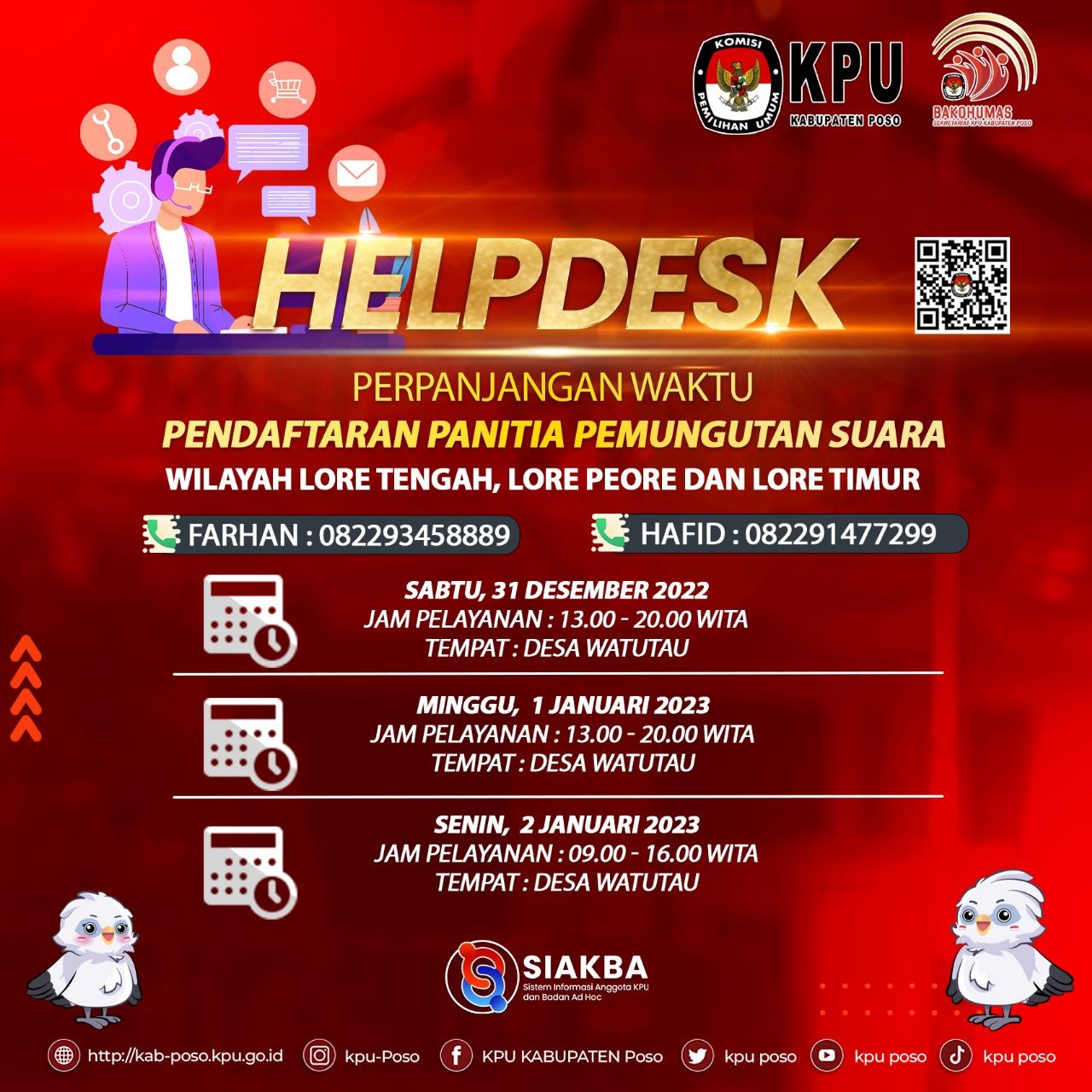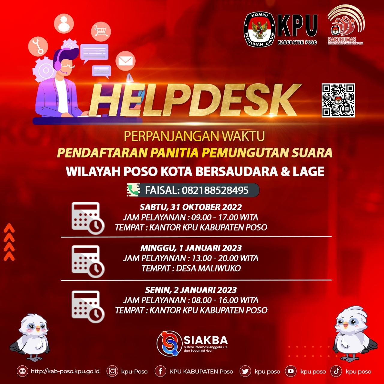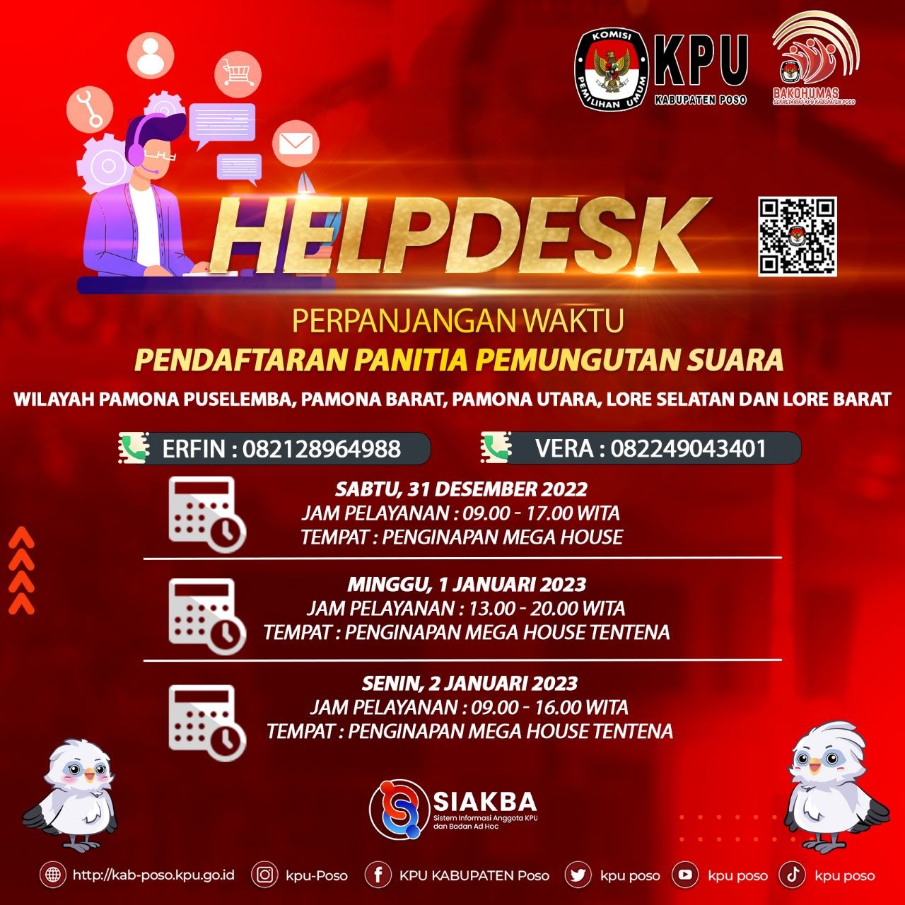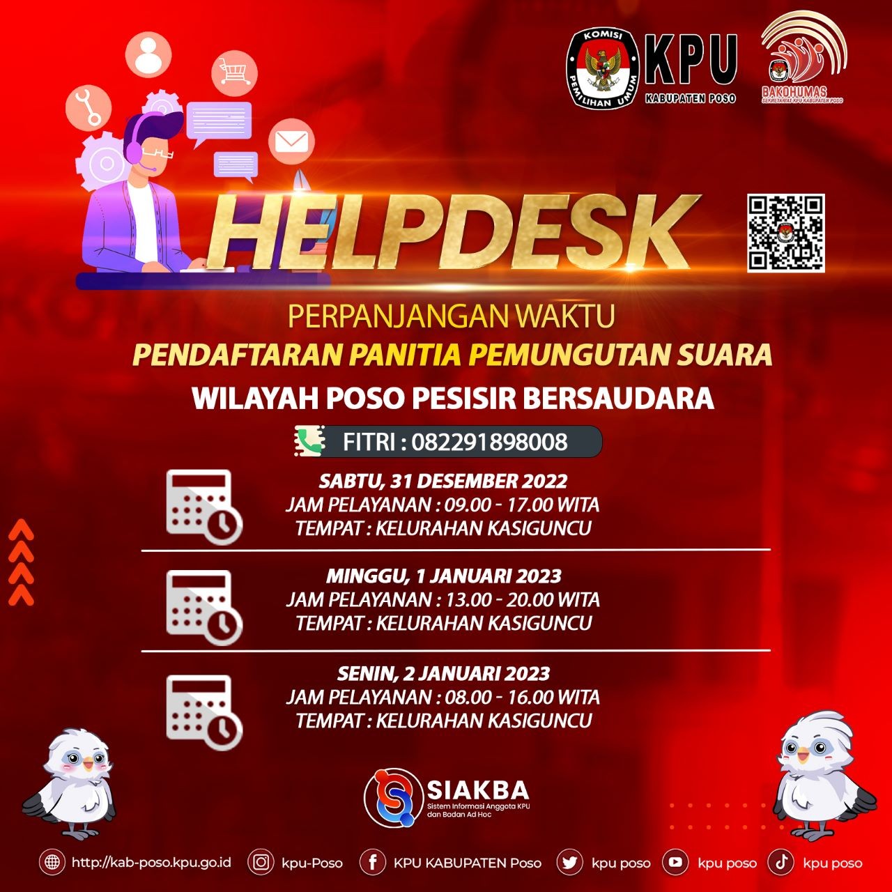 HELPDESK KPU KABUPATEN POSO, PENERIMAAN PERPANJANGAN PENDAFTARAN SELEKSI CALON ANGGOTA PANITIA PEMUNGUTAN SUARA UNTUK PEMILIHAN UMUM SERENTAK TAHUN 2024