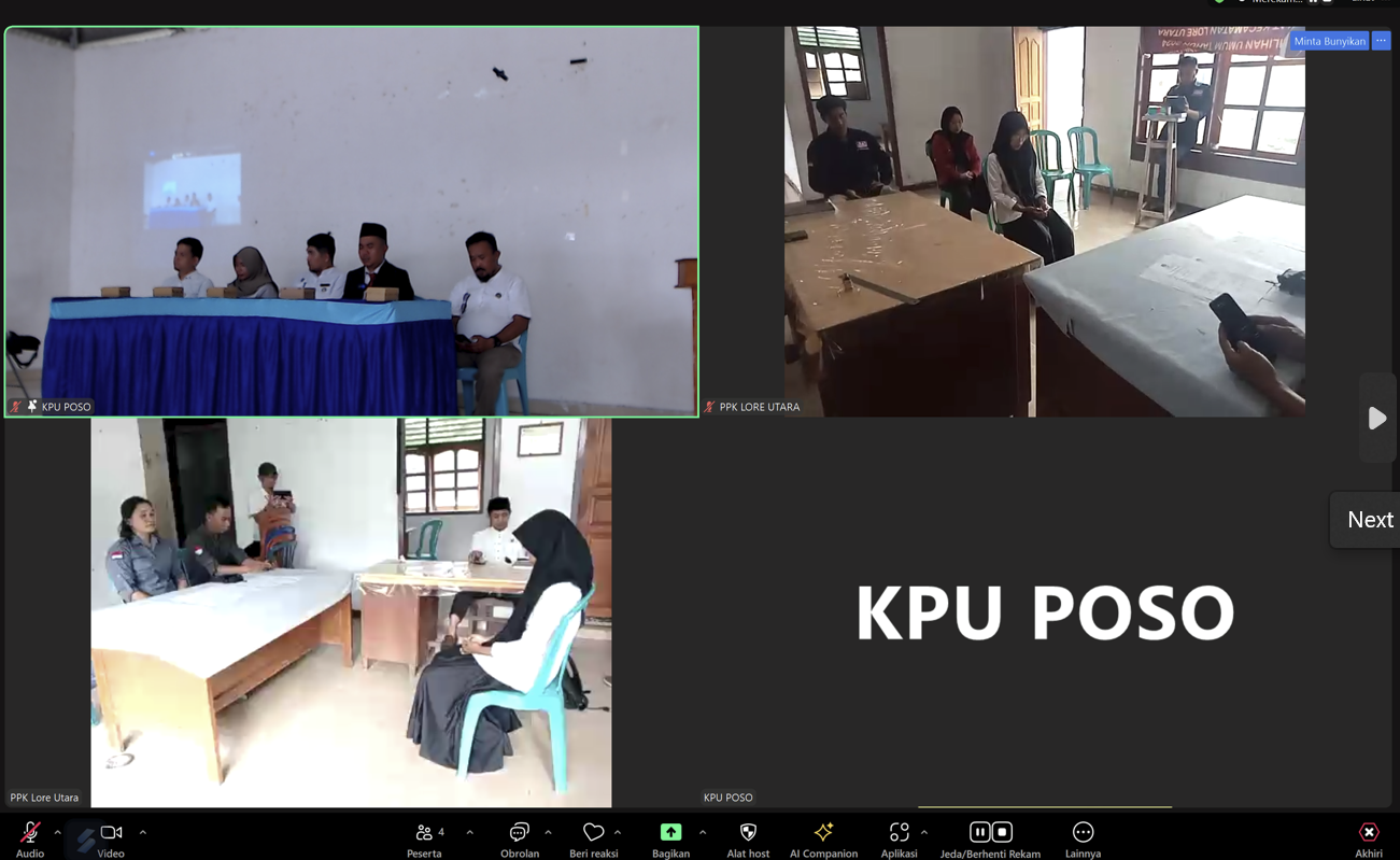 Pelantikan dilaksanakan secara bersamaan melalu luring dan daring untuk Rafina Dg Nusu, yang dilantik sebagai anggota PPS di Kelurahan Lombogia, Kecamatan Poso Kota Utara dan Mariam dilantik sebagai anggota PPS untuk Desa Bumi Banyusari, Kecamatan Lore Utara. Acara pelantikan ini berlangsung di Sekretariat Panitia Pemilihan Kecamatan (PPK) Poso Kota Utara.