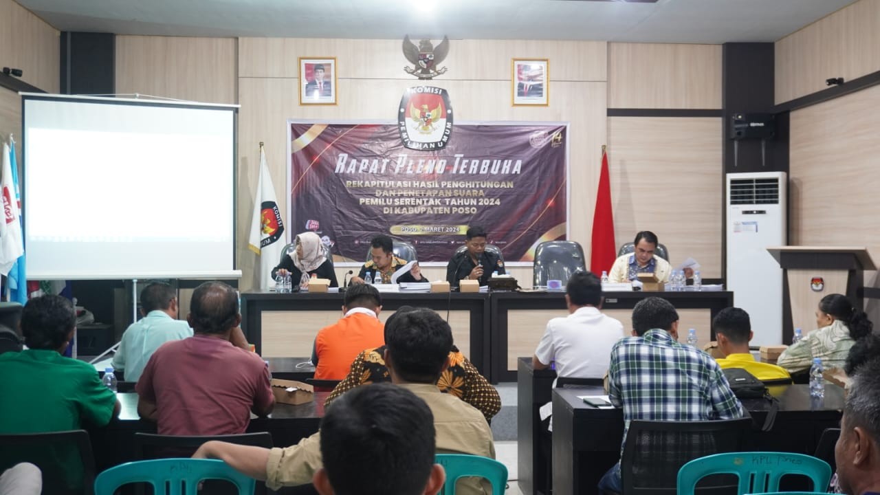 Poso, https://kab-poso.kpu.go.id/ KPU Kabupaten Poso telah menyelesaiakn Rapat Pleno Terbuka Rekapitulasi Hasil Penghitungan dan Penetapan Suara Pemilu Serentak Tahun 2024 di kabupaten Poso, kegiatan ini dilaksanakan selama 4 hari dengan menghadirkan saksi partai bersama Bawasu dan PPK Se-Kabupaten Poso.