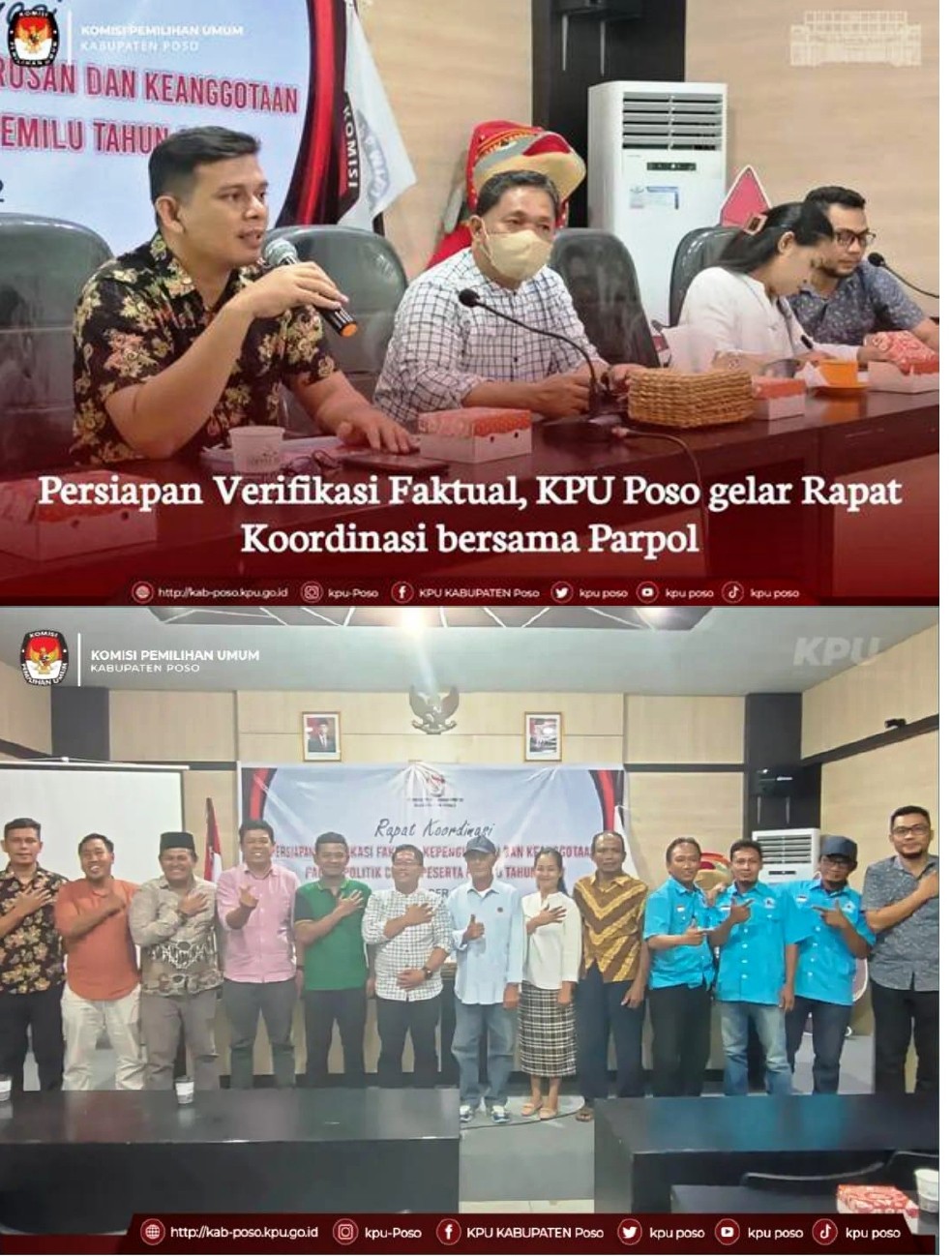 Kegiatan Rakor yang dibuka oleh Ketua KPU Poso Budiman Maliki. Dalam kesempatan tersebut, Budiman Maliki mengatakan, Dalam pelaksanaan Verifikasi Faktual nantinya, terdapat 3 hal utama yang harus dibuktikan, yakni kepengurusan dan keanggotaan parpol, memperhatikan keterwakilan perempuan minimal 30% pada susunan pengurus, serta domisili kantor tetap, sesuai dengan PKPU 4 Tahun 2022.