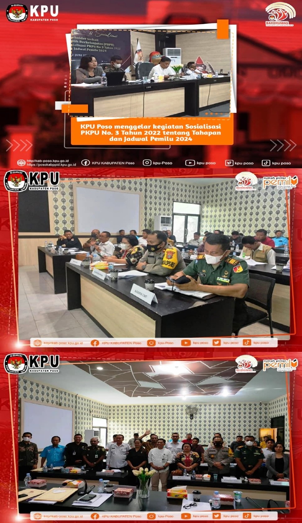 kab-poso.kpu.go.id - Setelah launching oleh KPU RI pada 14 Juni 2024 di mana menandakan dimulainya tahapan dan jadwal penyelenggaraan pemilihan umum 2024 secara nasional, maka KPU Poso bergerak cepat menindaklanjutinya dengan melakukan pertemuan sosialisasi tahapan ini kepada stekholder yaitu anggota FORKOPIMDA, BAWASLU Poso, PARPOL baik yang lama dan baru serta lainnya. Kegiatan sosialisasi yang dilaksanakan pada Rabu,22/6/2022 di kontor KPU Poso, Ketua Komisi Pemilihan Umum (KPU) Poso Budiman Maliki dalam sambutannya menyampaikan bahwa tujuan kegiatan ini selain kami ingin sosialisasikan PKPU 3 tahun 2022 tentang jadwal dan tahapan pemilu 2024 hal terpenting juga di harapakan adanya masukan kontruktif dari berbagai pihak untuk sama-sama berkomitmen mengawal dan ikut menyukseskan Pemilu ini. Di tambahkan oleh ketua bahwa Pemilu 2024 tidak sama dengan pelaksanaan Pemilu di tahun-tahun sebelumnya. Khusus pemilu 2024 sudah pasti akan banyak tantangan berat seperti jadwal tahapan yang akan saling beririsan dengan jadwal tahapan pemilihan serentak gubernur, bupati serta walikota di tahun yang sama dan Tahun 2024 nanti bahkan masih dalam status situasi pandemic coivid 19 walaupun memang kondisinya lagi turun. sekalipun tantangannya berat, namun kami sebagai penyelenggara Pemilu di Poso telah siap dan berkomitmen untuk memfasilitasi dan menyukseskan Pemilu 2024 dengan sebaik-baiknya. “khusus bagi partai politik, prinsip kami akan selalu melayani, silahkan berkompetisi dengan fair. kita selenggarakan dengan sebaik-baiknya, agar selama prosesnya tidak mengalami kendala, baik teknis maupun nonteknis,” imbuhnya. yang terpenting adalah pelaksanaan Pemilu 2024 di Poso dapat berjalan dengan aman, lancar, tertib dan bisa menghasilkan pemimpin-pemimpin yang baik,” ungkapnya. Selama kegiatan berlangsung ada sejumlah pertanyaan muncul dari peserta yang berkaitan langsung dengan tekhnis tahapan dan direspon langsung KPU Poso untuk kita samua tetap menunggu aturan lanjutan oleh KPU RI yang bersifat lebih detail tentang kegiatan tekhnis dalam tahapan pemilu itu sendiri. pada sisi lain juga, KPU Poso cukup banyak mendapatkan masukan-masukan konstruktif dari peserta untuk kelancaran dan kesuksesan dalam mengawal semua tahapan pemilu 2024 di Poso. Perlu di ketahui, tahapan dan jadwal Pemilu serentak tahun 2024 secara umum ada 11 tahapan besar yang diawali dengan perencanaan program dan anggaran, serta penyusunan peraturan. Pelaksanaan Tahapan akan di mulai 14 juni 2022 - 14 Juni 2024, pemutakhiran data pemilih dan penyusunan daftar pemilih tanggal 14 Oktober 2022- 21 Juni 2023, pendaftaran dan verifikasi peserta Pemilu tanggal 29 Juli 2022-13 Desember 2022, penetapan peserta pemilu 14 Desember 2022,penetapan jumlah kursi dan penetapan daerah pemilihan 14 Oktober – 9 Februari 2023. Sedangkan untuk Pencalonan presiden dan wakil presiden, DPR, DPD, DPRD Provinsi dan DPRD Kab/Kota 6 Desember 2022 – 25 November 2023, Kampanye Pemilu 28 November 2023 – 10 Februari 2024,pemunguntan dan penghitungan suara 14 februari – 20 Maret 2024, Penetapan hasil pemilu dan terkahir pengucapan sumpah/janji presiden dan wakil presiden,anggota DPR, DPD, DPRD Provinsi dan Anggota DPRD Kabupaten/Kota 1 Oktober – 20 Oktober 2024.