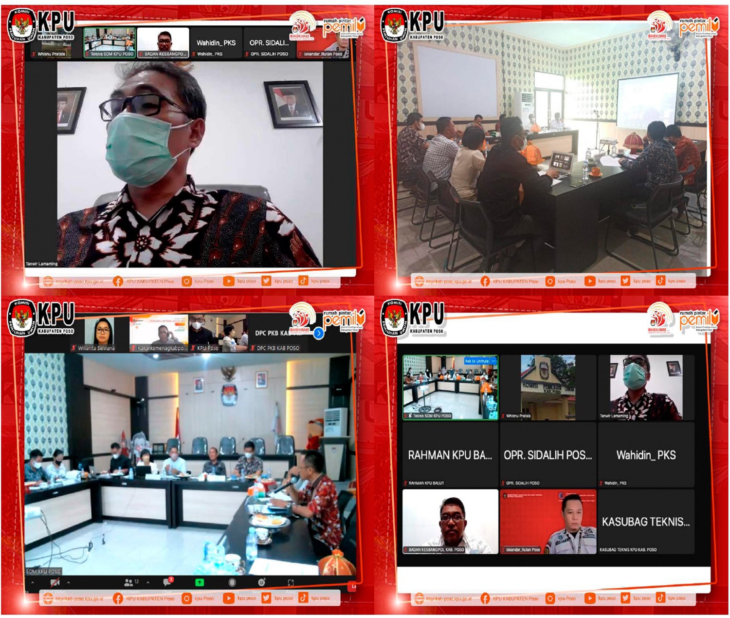 kab-poso.kpu.go.id Untuk memastikan data pemilih yang berkualitas, Komisi Pemilihan Umum Kabupaten Poso gelar Rapat Koordinasi Daftar Pemilih Berkelanjutan (DPB) Triwulan I periode Maret Tahun 2022 pada kamis 24/3/2022, dilaksanakan dengan metode daring dan luring. Rapat Koordinasi bertempat di Ruang Rapat Kantor KPU Kabupaten Poso, dihadiri oleh oleh Ketua Budiman Maliki dan Anggota KPU Kabupaten Poso Wilianita S Pangetty, Taufik Hidayat, Whisnu Pratala, Olivia Salintohe, serta Sekretaris Hamzah didampingi Kepala Sub Bagian Program, Data Dan Informasi Rahmayanti,SE, serta Seluruh Staf Datin KPU Kabupaten Poso. Turut hadir secara luring pada Rapat Koordinasi tersebut, Bupati Poso yang diwakili oleh Assisten I Setdakab Poso M. Jamal, Plt Dinas Kependudukan dan Pencatatan Sipil Kabupaten Poso Desmon M juga Kepala bidang Dinas Kependudukan dan Pencatatan Sipil Kabupaten Poso David, Bawaslu Kabupaten Poso Abdul Malik Saleh, serta stakeholder dan pimpinan pengurus Partai Politik Se-Kabupaten Poso. Mengawali kegiatan tersebut, Tanwir Lamaming selaku Ketua KPU Provinsi Sulawesi Tengah menyampaikan sambutannya, “Terimakasih kepada para stakeholder yang telah hadir dalam kegiatan kita ini. berkaitan dengan kegiatan ini ada beberapa hal dan langkah – langkah dalam proses melakukan pemutakhiran data pemilih berkelanjutan, harus bisa diselesaikan sebelum pemilu serentak berlansgung, salah satunya melakukan komunikasi dan koordinasi dengan instansi terkait untuk meminta data data yang dibutuhkan”tegasnya. Selanjutnya, Budiman Maliki selaku Ketua KPU Kabupaten Poso menyampaikan “Kami terus mengajak seluruh pihak untuk dapat berkontribusi secara aktif dalam memberikan informasi terkait pemutakhiran daftar pemilih berkelanjutan ini, baik secara langsung maupun melalui website KPU Kabupaten Poso. Supaya data yang kita peroleh pada tahun 2022 lebih maksimal,” Harapannya. Selanjutnya 4 Hal yang disimpulkan dalam rakor ini, yaitu : 1. Data Pemilih dan Data Kependudukan saling terkait erat karena itu penting koordinasi dan sinkronisasi pihak/OPD terkait untuk Data Pemilih Berkualitas 2. Data Penduduk meninggal dunia yang berpotensi pada Pemilih TMS berhubungan dengan data penerima santunan duka (bansos) dari Dinsos kurun waktu 15 Okt 2021-18 Maret 2022 juga warga meninggal dunia yang tdk termasuk dalam daftar penerima program santunan duka namun sulit mengetahui datanya jika tdk ada penyampaian dari pihak keluarga/ahli waris ke Disdukcapil untuk penerbitan Akta Kematian agar dapat terhapus dari Data Kependudukan 3. Berbagai penyampaian data dari Rutan Poso, Kemenag Kab Poso, Dinsos dan Disdukcapil, Polres Poso dan Kodim 1307 Poso akan ditindaklanjuti melalui surat resmi atau mekanisme koordinasi antar OPD untuk memudahkan proses Mutarlih DPB 4. Proses DPB yang dilakukan oleh KPU Kabupaten Poso yang didukung oleh berbagai pihak terkait diharapkan dapat mewujudkan Data Pemilih Berkualitas dan Pemilu yang berintegritas. dari stakeholders yg hadir baik luring maupun daring disebutkan nama dan atau lembaganya.