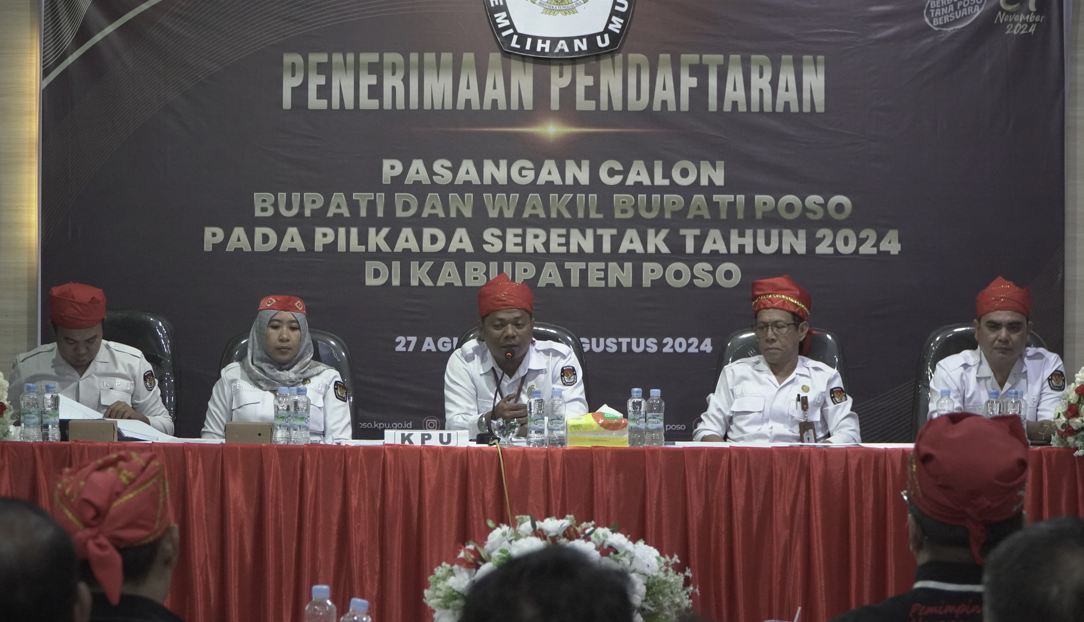 Poso, https://kab-poso.kpu.go.id Komisi Pemilihan Umum (KPU) Kabupaten Poso telah menuntaskan kegiatan pendaftaran calon bupati dan wakil bupati untuk Pilkada Serentak 2024 dengan lancar. Kegiatan yang berlangsung dari tanggal 27 hingga 29 Agustus 2024 ini bertempat di Aula KPU Kabupaten Poso. Selama tiga hari pendaftaran, lima komisioner KPU Kabupaten Poso memimpin langsung proses tersebut. Mereka adalah Muh Ridwan Dg Nusu sebagai Ketua KPU Poso, bersama dengan Dewi Yul Nawawi, Roni Mathindas, Mansur, dan Alfred Sabintoe, yang masing-masing menjabat sebagai Anggota KPU Poso. Proses pendaftaran ini juga diawasi oleh Badan Pengawas Pemilihan Umum (Bawaslu) Kabupaten Poso untuk memastikan transparansi dan integritas proses. Dalam masa pendaftaran yang berjalan sesuai jadwal tahapan Pilkada, KPU Kabupaten Poso menerima pendaftaran dari empat pasangan calon bupati dan wakil bupati. Keempat pasangan calon tersebut adalah, Pasangan Verna GM Inkiriwang dan Soeharto Kandar, Pasangan Darmin Agustinus Sigilipu dan Samsinar Z Moga, Pasangan Lukky Semen dan Nasrudin L Midu, Pasangan Sony Kapito dan Yusuf Keempat pasangan calon ini telah memenuhi persyaratan administratif dan siap untuk melanjutkan ke tahapan berikutnya dalam Pilkada Serentak 2024. Kegiatan ini merupakan bagian penting dari upaya memastikan bahwa pemilihan bupati dan wakil bupati Poso berjalan secara adil dan demokratis. Seluruh pihak diharapkan terus berkomitmen untuk menjaga semangat demokrasi dan berpartisipasi aktif dalam setiap tahapannya. [Humas KPU Poso, Fr]