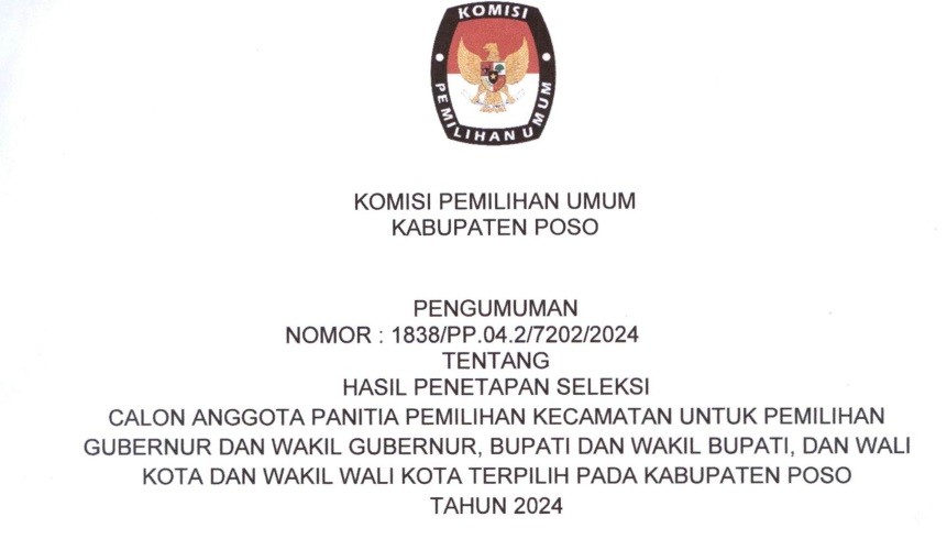 HASIL PENETAPAN SELEKSI CALON ANGGOTA PANITIA PEMILIHAN KECAMATAN